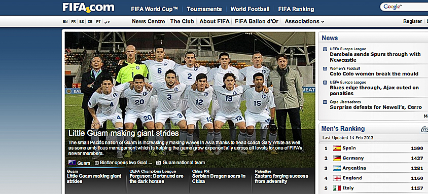 CCCG Secretary General Richard Lai has served as the President of the Guam Football Association and has brought in millions of dollars to improve sport facilities on Guam. Mr. Richard Lai has contributed so greatly to the betterment of island sports activities for youths of all ages. His outstanding contributions to promoting sports through the Guam Football Association (GFA) were recently highlighted by the visit of FIFA President Joseph Blatter, during his official visit to Guam from Switzerland, who praised the extensive work accomplished by Mr. Richard Lai during the past decade as the President of GFA.